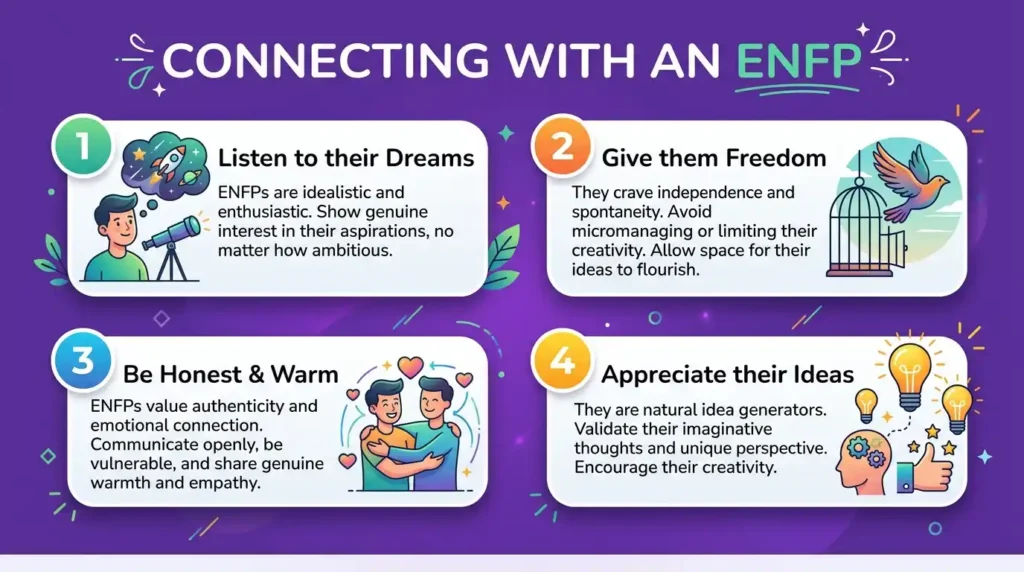 ENFPs connect best with people who appreciate their energy, creativity, and emotional depth.